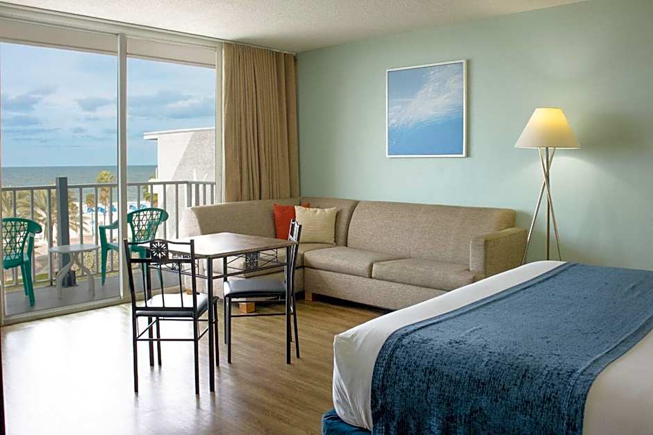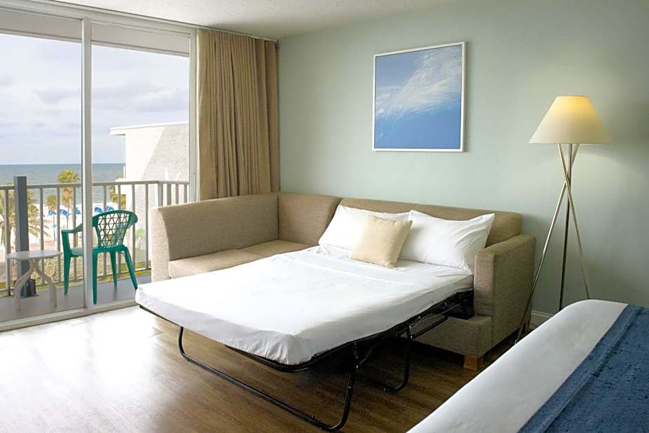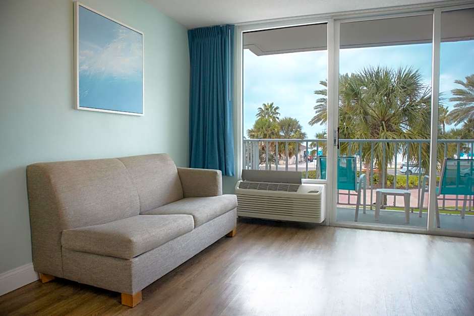 Featuring a private balcony with Gulf view, this suite also features a kitchenette and a living area with a sofa bed.